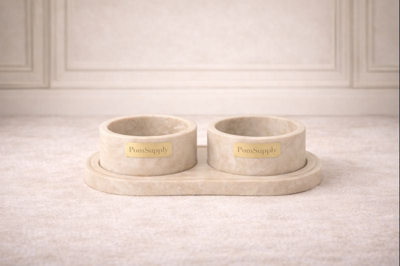 De PomSupply Luxe Marmeren Voerbak is ontworpen voor hondenbaasjes die houden van stijl, kwaliteit en rust in hun interieur. Deze dubbele voerbak is gemaakt van hoogwaardig natuursteen en afgewerkt met een elegant gouden PomSupply label, wat zorgt voor een luxe en tijdloze uitstraling.